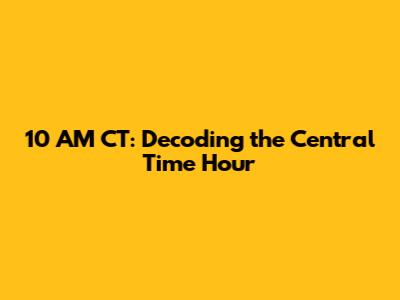 In conclusion, 10 AM CT is more than just a time; it is a point in the day where business activities are in full swing, students are attending classes, and news is being disseminated. It is a critical period for both personal and professional activities. By knowing what happens at 10 AM CT, you are better equipped to organize your day, schedule meetings, and engage with international partners. Whether you're planning a meeting, watching the news, or simply coordinating with someone in another time zone, understanding the significance of 10 AM CT helps you navigate the day effectively. Now that you're an expert on 10 AM CT, embrace the power of this hour, plan your time efficiently, and make the most of it! Have a great day, and make every 10 AM CT count!