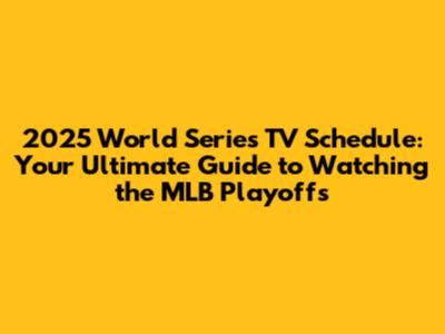 2025 World Series TV Schedule: Where To Watch