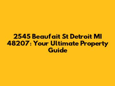 Hey there, real estate enthusiasts and potential homeowners! Let's dive deep into a property located at 2545 Beaufait St, Detroit, MI 48207. This isn't just about a street address; it's about uncovering the potential of a specific location in the heart of Detroit. This guide will be your go-to resource, whether you're considering buying a home, making an investment, or just curious about the area. We'll explore the neighborhood, analyze property values, and peek into what makes this spot unique. So, grab a coffee, and let's get started on this exciting journey to discover everything about 2545 Beaufait St!