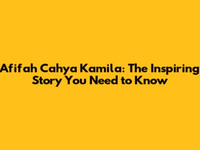 Afifah Cahya Kamila: The Inspiring Story You Need To Know