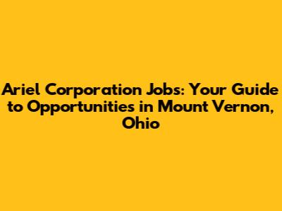 Ariel Corporation Jobs In Mount Vernon, Ohio