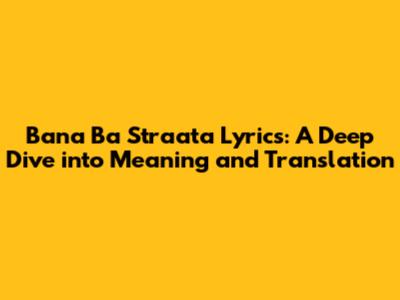 Bana Ba Straata Lyrics: Unveiling The Meaning & Translation