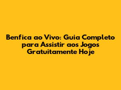 Benfica Ao Vivo: Como Assistir Aos Jogos Gratuitamente Hoje