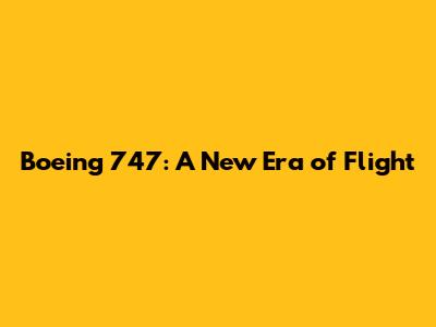 Boeing 747: A New Era Of Flight