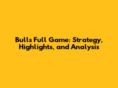 Bulls Full Game: Strategy, Highlights, And Analysis