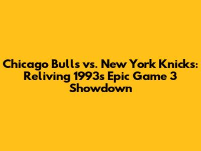 Bulls Vs. Knicks: Reliving 1993's Epic Game 3 Showdown