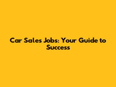 Car Sales Jobs: Your Guide To Success