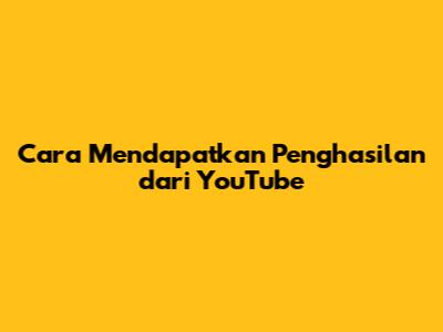 Cara Mendapatkan Penghasilan Dari YouTube