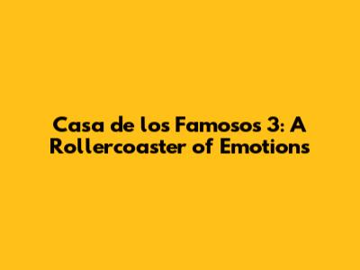 Casa de los Famosos 3 was an unforgettable season. It had it all: drama, emotion, and an amazing cast. It's a reminder of why we love reality TV. The show delivered on all fronts. This season was truly special. Thanks for joining me to relive the magic of Casa de los Famosos 3. I hope you had as much fun as I did.