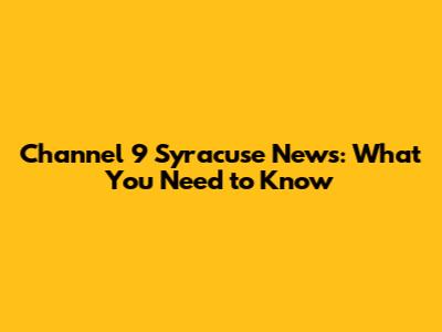 Channel 9 Syracuse News: What You Need To Know