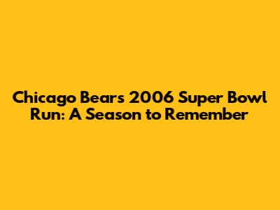 \Hey guys! Let's dive into a truly unforgettable chapter in Chicago Bears history: their incredible journey to Super Bowl XLI in 2006. This wasn't just a season; it was a rollercoaster of emotions, showcasing a team that captured the hearts of fans with their grit, determination, and sheer talent. Whether you're a die-hard Bears fan or just a football enthusiast, get ready to relive the magic!