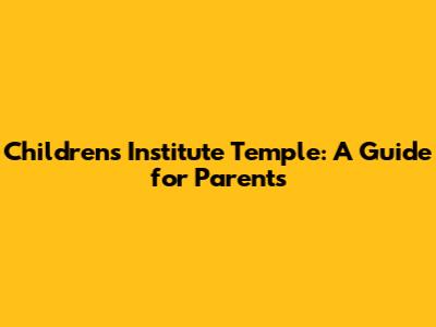 Children's Institute Temple: A Guide For Parents