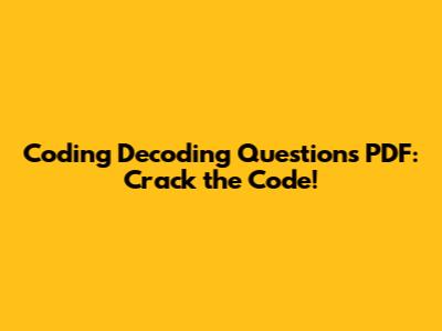 Coding Decoding Questions PDF: Crack The Code!