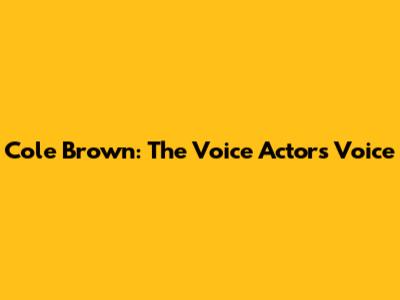 Cole Brown: The Voice Actor's Voice