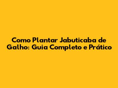 Como Plantar Jabuticaba De Galho: Guia Completo