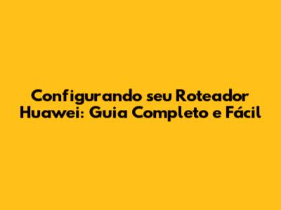 Configurando Seu Roteador Huawei: Guia Completo E Fácil