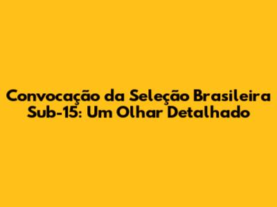 Convocação Da Seleção Sub-15: Talentos Brasileiros Em Campo!