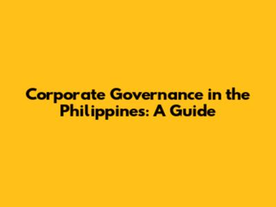 Corporate Governance In The Philippines: A Guide