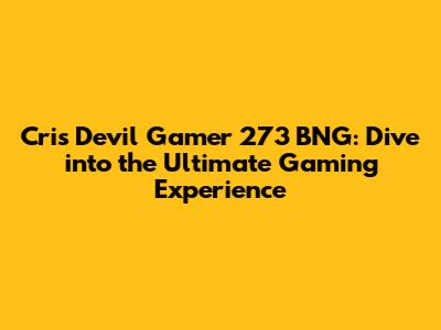 Cris Devil Gamer 273 BNG: An Epic Gaming Adventure