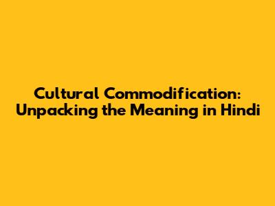 Cultural Commodification: Meaning & Impact In Hindi