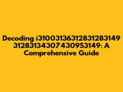 Decoding I31003136312831283149 31283134307430953149: A Comprehensive Guide