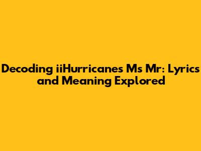 Decoding IiHurricane's Ms Mr: Lyrics And Meaning Explored