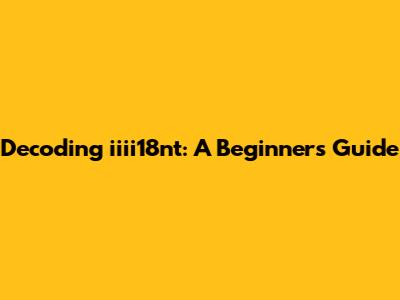 Decoding Iiii18nt: A Beginner's Guide