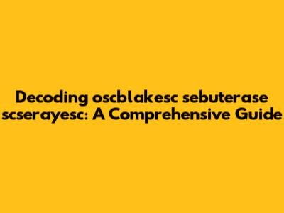 Decoding Oscblakesc Sebuterase Scserayesc: A Comprehensive Guide