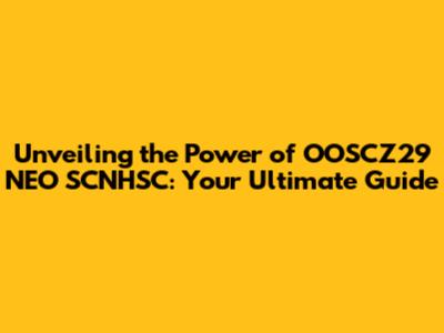The Future is Here: Embracing OOSCZ29 NEO SCNHSC