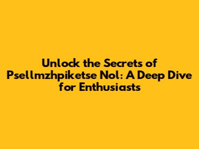 Unlock the Secrets of Psellmzhpiketse Nol: A Deep Dive for Enthusiasts