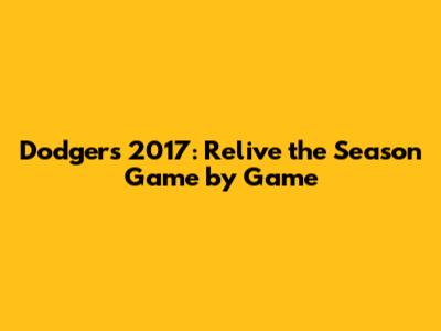 Dodgers 2017: Relive The Season Game By Game