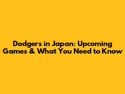 Dodgers In Japan: Upcoming Games & What You Need To Know