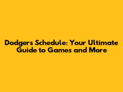 Dodgers Schedule: Your Ultimate Guide