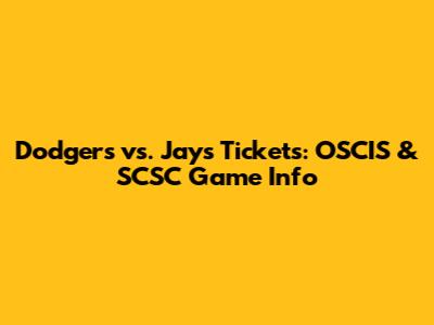 Dodgers Vs. Jays Tickets: OSCIS & SCSC Game Info