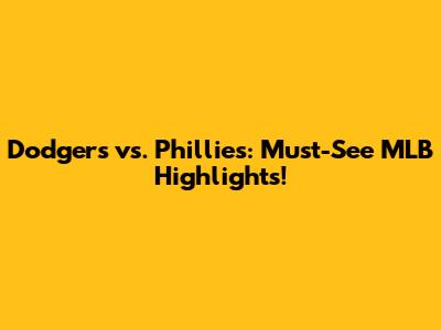 Dodgers Vs. Phillies: Must-See MLB Highlights!