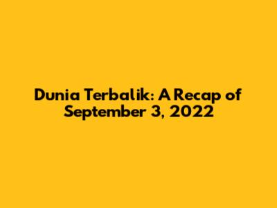 Dunia Terbalik: A Recap Of September 3, 2022