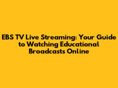EBS TV Live: Watch Educational Streaming Online Now!