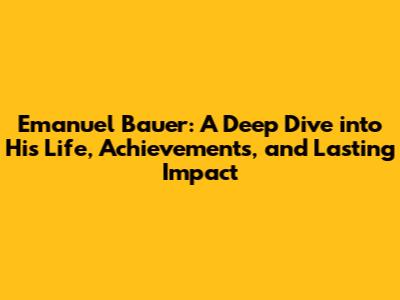 Emanuel Bauer: Biography, Achievements & Impact