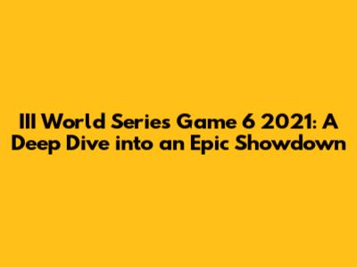Hey guys! Let's dive into one of the most talked-about games in baseball history: the III World Series Game 6 of 2021. This wasn't just any game; it was a rollercoaster of emotions, strategic plays, and unforgettable moments that kept fans on the edge of their seats. Whether you're a die-hard baseball fan or just love a good sports story, this game has something for everyone.