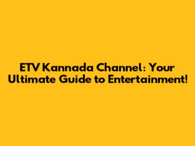 ETV Kannada: Your Ultimate Guide To Entertainment!