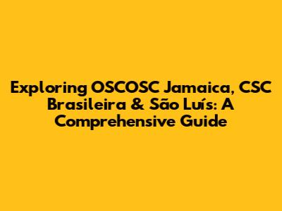 Hey there, fellow explorers! Let's dive into an exciting journey where we'll explore OSCOSC Jamaica, CSC Brasileira, and the vibrant city of São Luís. This article is your ultimate guide, designed to provide you with all the essential information, fascinating insights, and practical tips you need to navigate these unique entities and locations. Whether you're a seasoned traveler, a business professional, or simply curious, get ready to uncover the stories, understand the significance, and appreciate the nuances of each element. We'll start by breaking down each component, then connecting them to give you a complete picture.