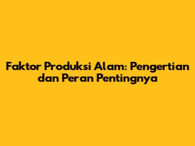 Apa Itu Faktor Produksi Alam?