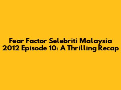 Hey guys! Buckle up, because we're diving deep into the adrenaline-pumping world of Fear Factor Selebriti Malaysia 2012 Episode 10! This episode was a wild ride, packed with challenges that tested the limits of our favorite Malaysian celebrities. We're going to break down everything, from the contestants and the gruesome stunts to the nail-biting moments that had us all on the edge of our seats. So, grab your snacks, get comfortable, and let's relive the chaos together! This season of Fear Factor Selebriti Malaysia was known for pushing the boundaries, and episode 10 was no exception. The stakes were high, the challenges were insane, and the celebrities were put through the ultimate test of courage, teamwork, and sheer determination. The show brought together some of Malaysia's biggest names, from actors and singers to athletes and personalities, all willing to face their fears for the chance to win the grand prize and, of course, the bragging rights. The producers really stepped up their game this season, designing challenges that were not only physically demanding but also psychologically challenging. We'll explore the specific tasks, the celebrity performances, and those unforgettable moments that made episode 10 a standout in the season. We're talking about everything from heights and creepy crawlies to some seriously stomach-churning food challenges. So, let's jump right in and dissect this epic episode!