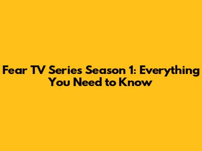 Fear TV Series Season 1: Everything You Need To Know