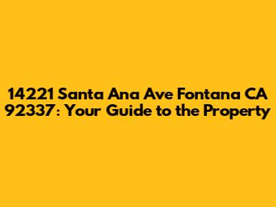Hey there, property enthusiasts! Let's dive into the details of 14221 Santa Ana Ave Fontana CA 92337. This address unlocks a world of possibilities, and whether you're a potential buyer, a curious investor, or just someone who loves exploring real estate, you're in the right place. We're going to break down everything you need to know about this property, from its location and surrounding area to potential investment opportunities. So, grab a coffee, get comfy, and let's explore! This property's story begins at a specific address, but it quickly expands to encompass the vibrant community of Fontana, California. We'll be uncovering the unique aspects of this location, its potential, and what makes it a compelling prospect for those looking to invest, reside, or simply understand the local real estate landscape. Get ready for an in-depth look at 14221 Santa Ana Ave Fontana CA 92337 and all it has to offer! The address itself is the starting point of our journey, but the true picture emerges when we consider the neighborhood, the local amenities, and the overall real estate market trends. We'll be looking at everything from the local schools to the nearby shopping centers, ensuring you have a comprehensive understanding of what it means to be connected to this specific address within the larger Fontana community. This information is intended to provide insights and does not constitute professional real estate advice; however, you will surely gain a better insight into the potential of 14221 Santa Ana Ave Fontana CA 92337.