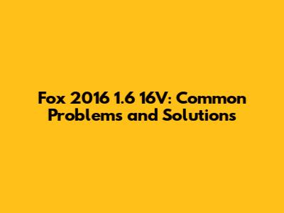 Fox 2016 1.6 16V: Common Problems And Solutions