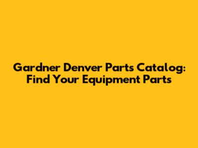 Gardner Denver Parts Catalog: Find Your Equipment Parts