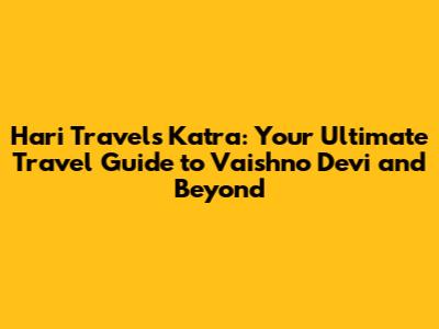 Hari Travels Katra: Your Ultimate Travel Guide