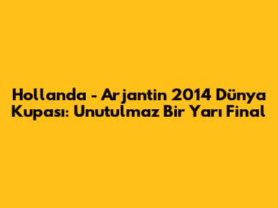 Hey millet! 2014 Dünya Kupası'nda Hollanda ile Arjantin arasındaki yarı final maçı, futbol tarihine kazınan unutulmaz anlardan biri oldu, değil mi? İşte o müthiş maçın perde arkası, unutulmaz anları ve futbol dünyasına bıraktığı etkiler!