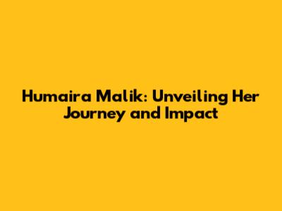 Humaira Malik: Unveiling Her Journey And Impact